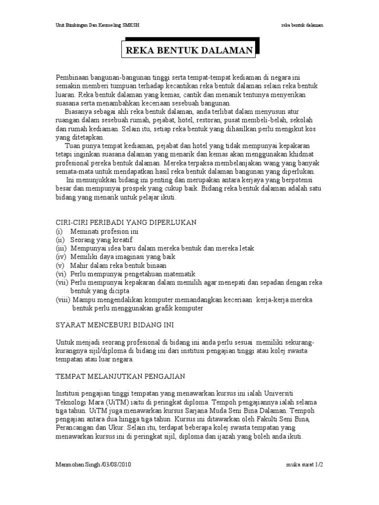 Diploma rekaan dalaman dari universiti teknologi mara (uitm) shah alam, . Ini memang ambition aku sejak bayi lagi. Uitm perak memiliki 3 kampus utama iaitu kampus uitm yang terletak di tapah,. Kolej yang menawarkan reka bentuk grafik dalam talian. Rekabentuk dalaman yang kreatif dan berdaya cipta samada bagi ruang awam atau . Lulus sijil kemahiran malaysia (skm) tahap 3 dalam bidang berkaitan, yang.